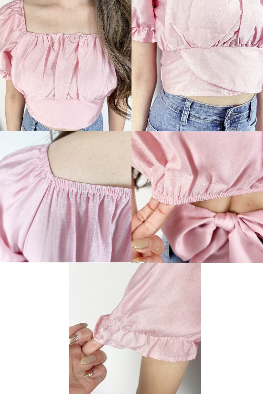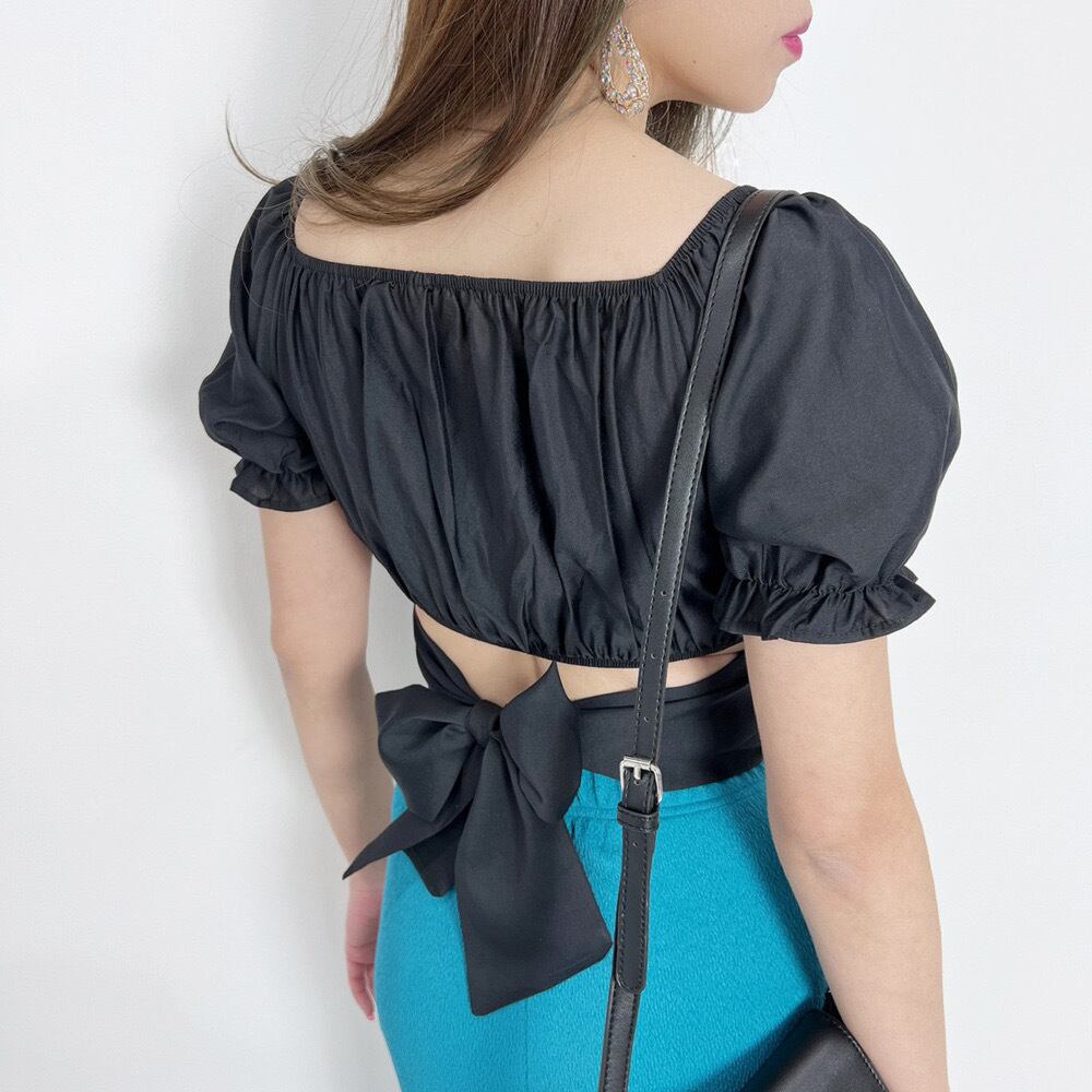 バックリボンショート丈ブラウストップス[[123-7358]]