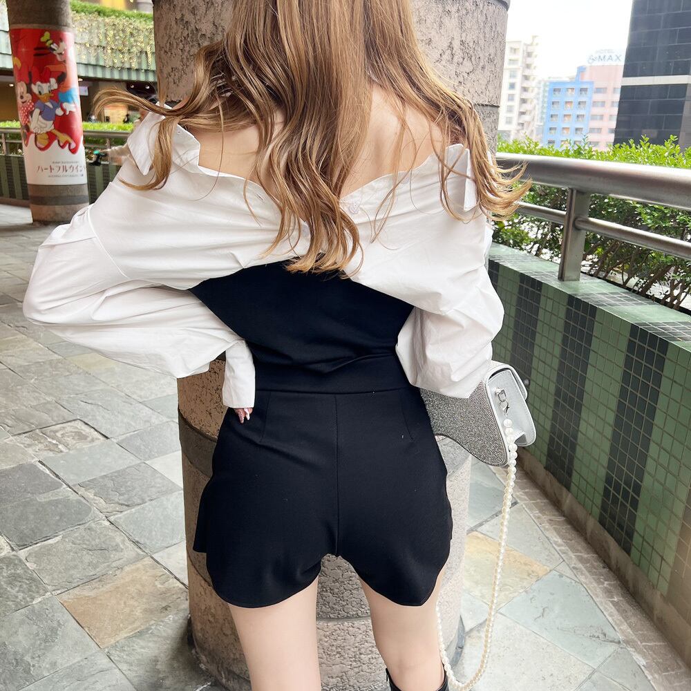 シャツ×カットドッキングが春らしい♪オフショルシャツトップス