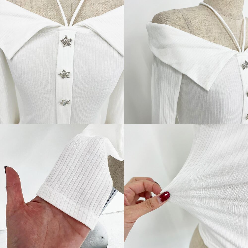 【SALE 70%OFF!!】スタービジューオフショルテレコトップス[[123-7574]]