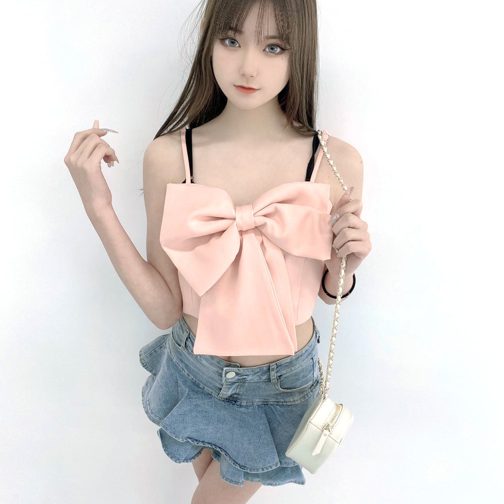 大きめリボンが存在感抜群!!可愛い印象のリボンキャミトップス