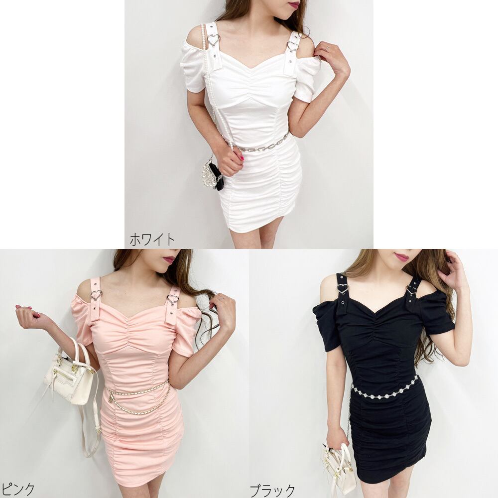 ハートバックルが可愛い印象♪シャーリングワンピース