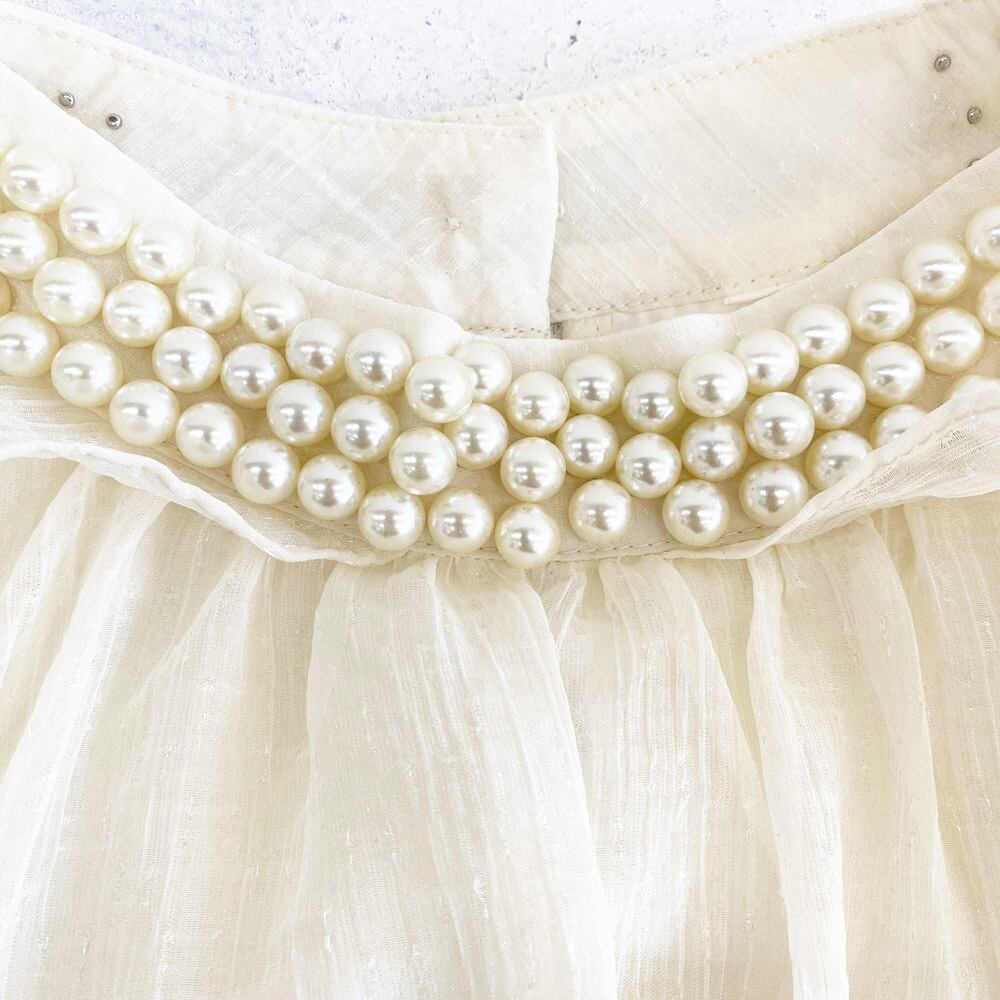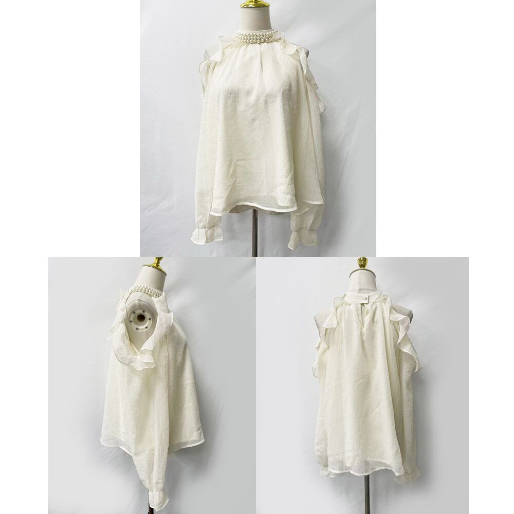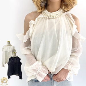 パール飾りフリルシアーブラウス[[123-7798]]