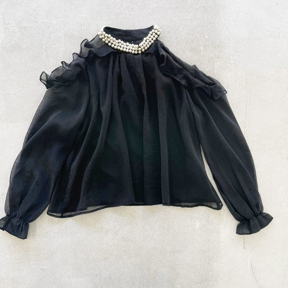 【SALE 50%OFF!!】パール飾りフリルシアーブラウス[[123-7798]]