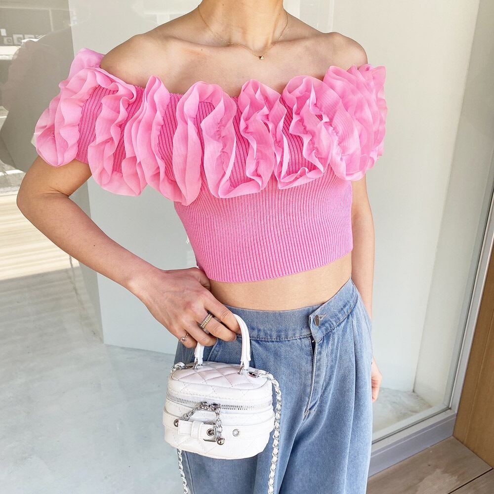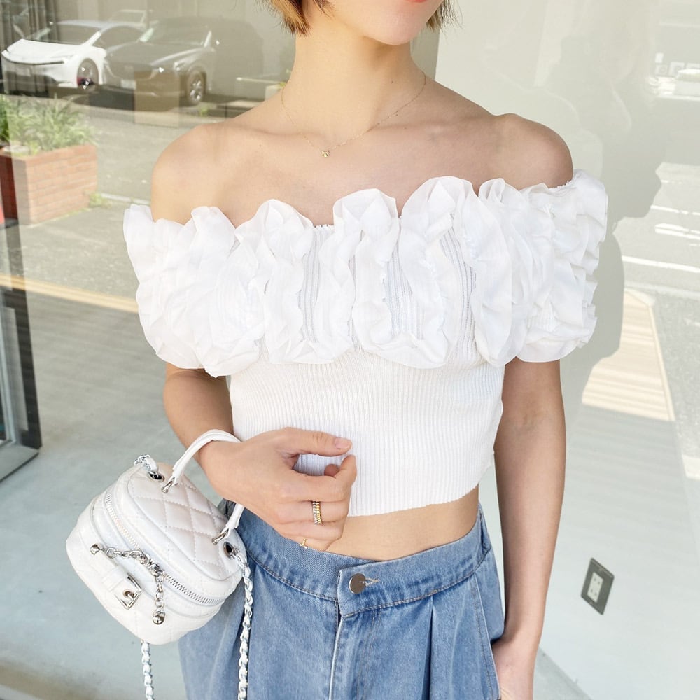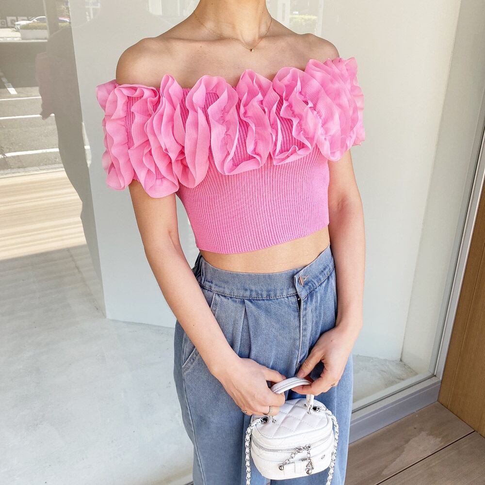 シフォンフリルがボリューム満点♪オフショルダートップス