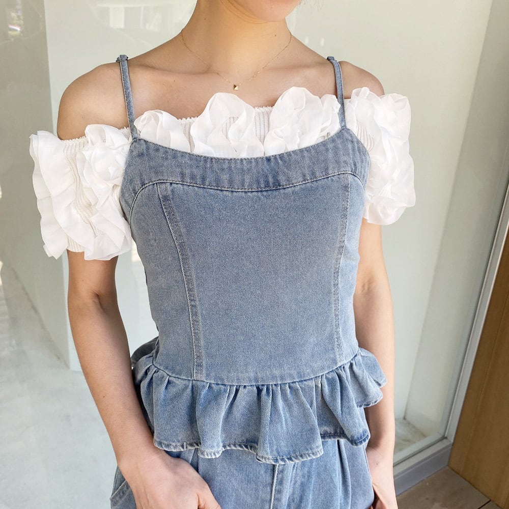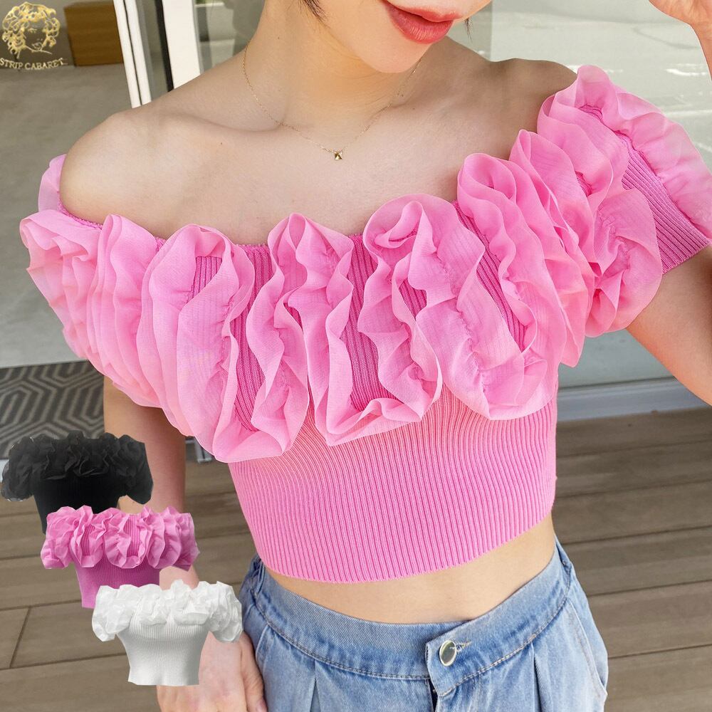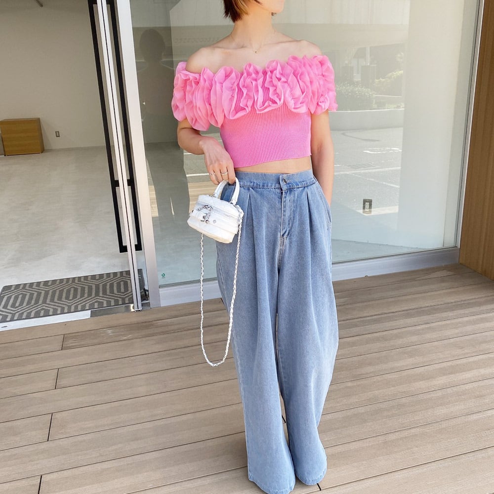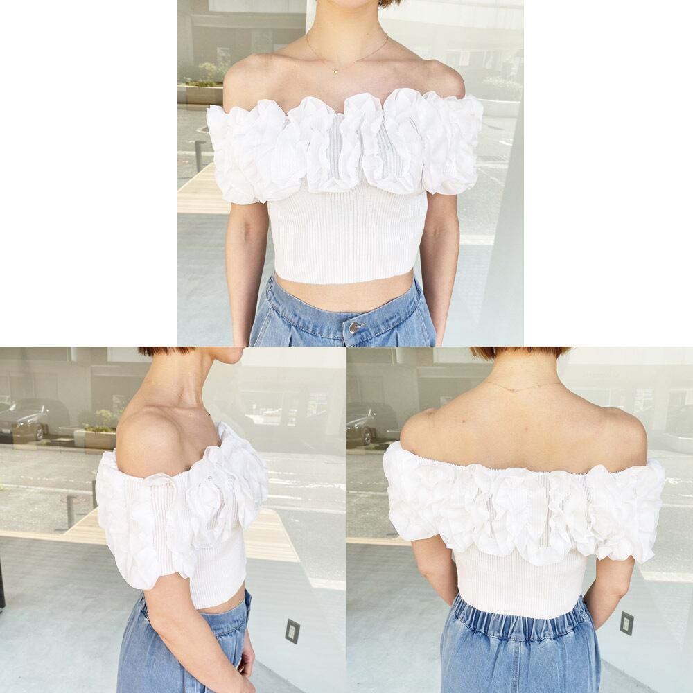 シフォンフリルがボリューム満点♪オフショルダートップス