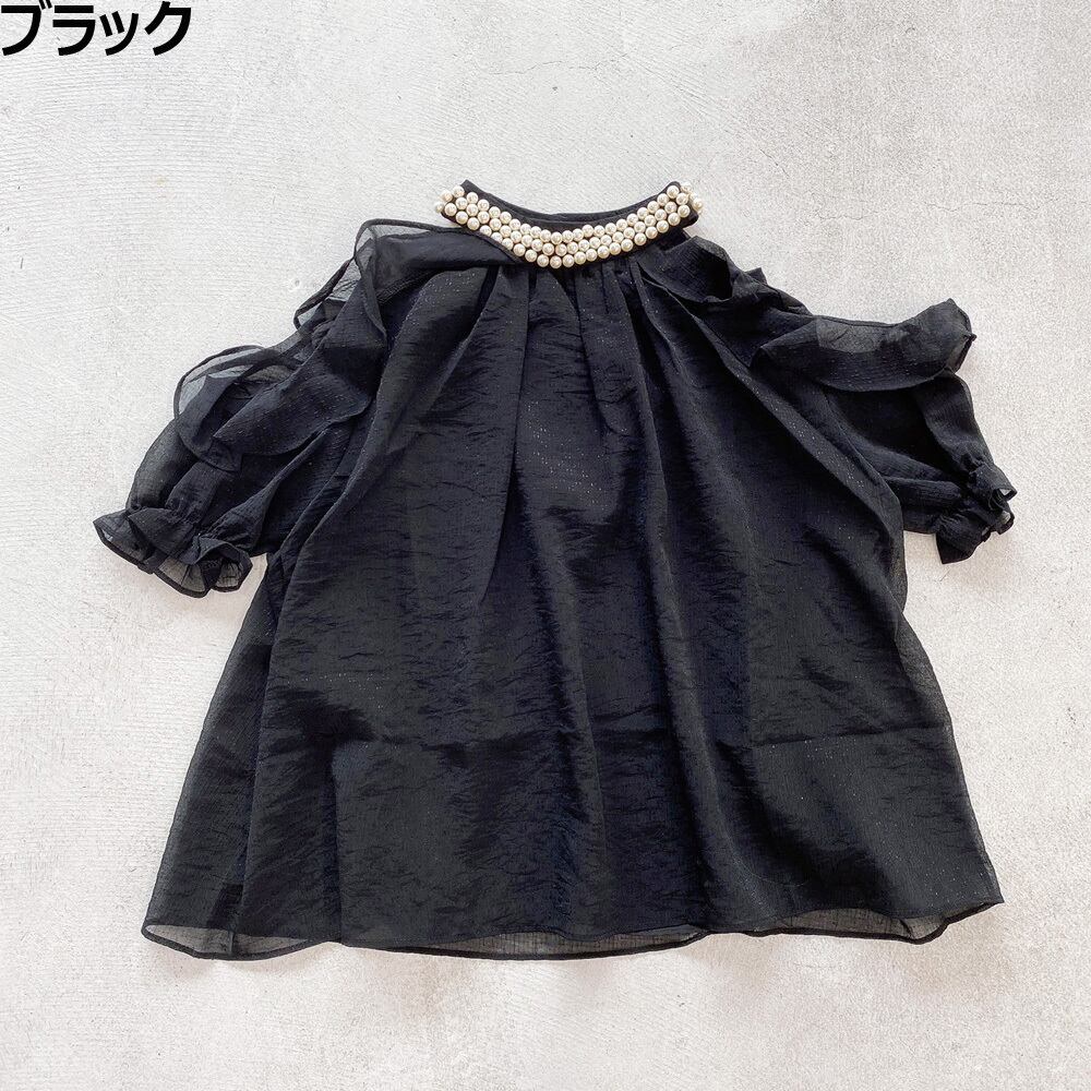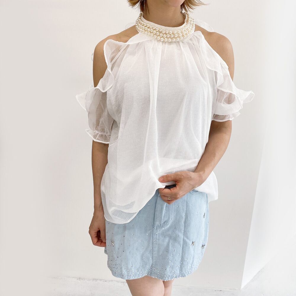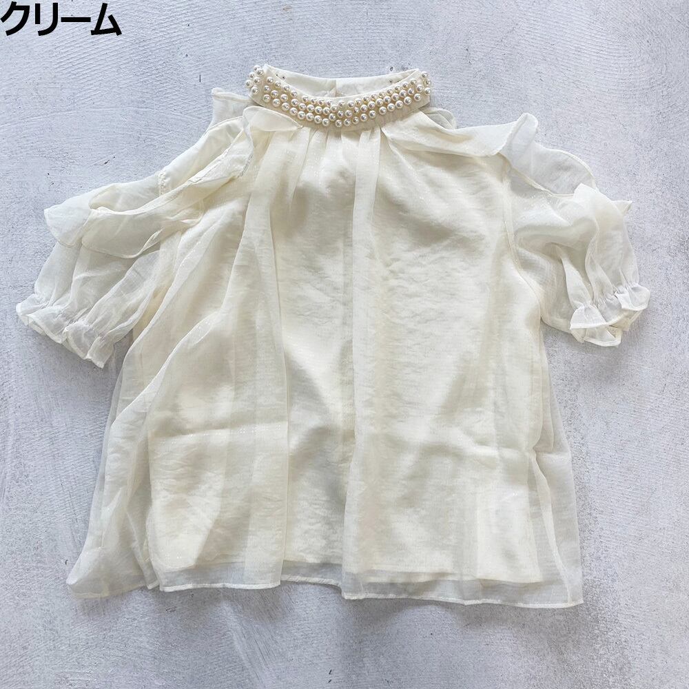 パール飾りフリルシアーブラウス[[123-7835]]